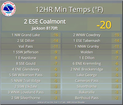 We have a weak little disturbance rolling through on this Monday. That'll bring the Front Range some snow showers this afternoon. Nothing significant. Maybe an inch, maybe not even that. The higher elevations will get a couple of inches of snow - rather insignificant for them as well but adding to that awesome base nonetheless!